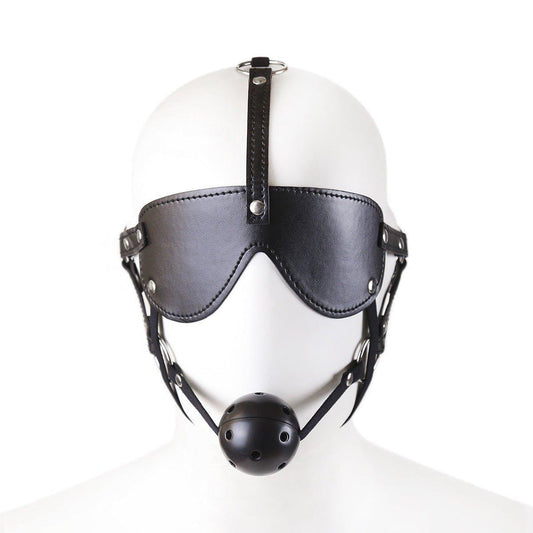 Masque de bondage BDSM avec bâillon à boule et bandeau pour les yeux