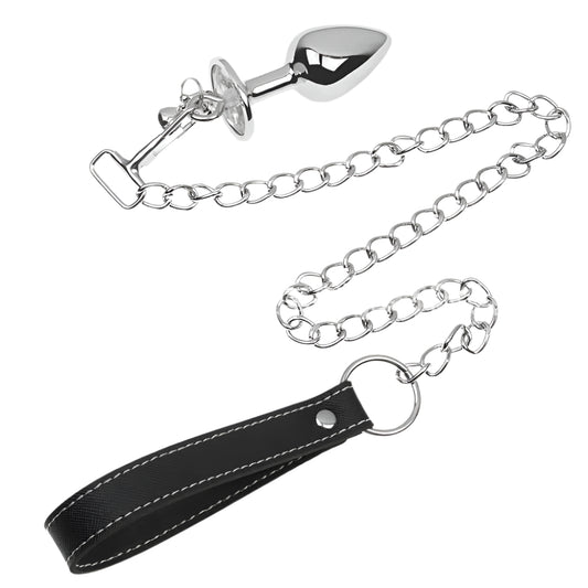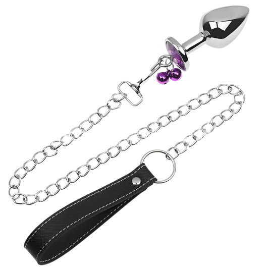 Plug anal violet avec bijoux, cloches et laisse