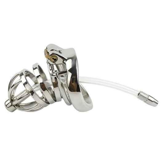 Cage de chasteté en métal de petite taille - avec tube urétral en métal